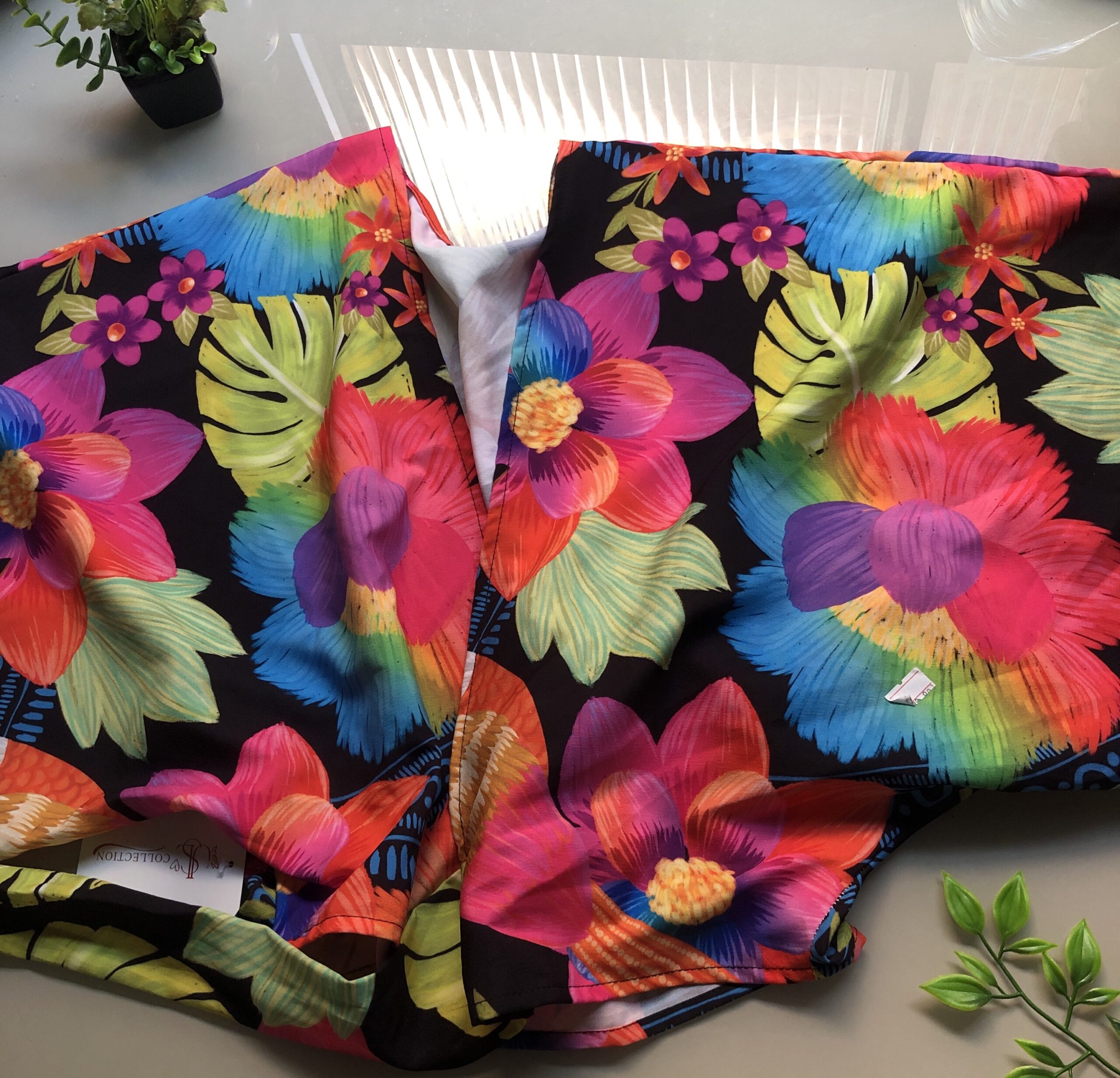 Nosso wrap top floral é a peça perfeita para adicionar um visual vibrante e cheio de estilo ao seu guarda-roupa. Com uma estampa de flores tropicais super coloridas em fundo preto, esta blusa tem um caimento leve e elegante, perfeito para usar com calça, saia, short. O decote V valoriza a silhueta, e o fechamento em amarração na lateral permite um ajuste perfeito ao corpo.